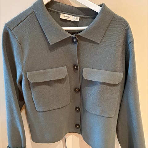 Lekker skjorte i olivengrønn farge fra Vero Moda. Ubrukt og helt som ny fra butikk. Størrelse 42, men denne vil jeg si er som en 40 (størrelse medium) . Laget i viskose og polyester. Superfine ermer.