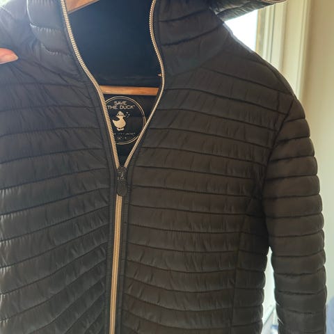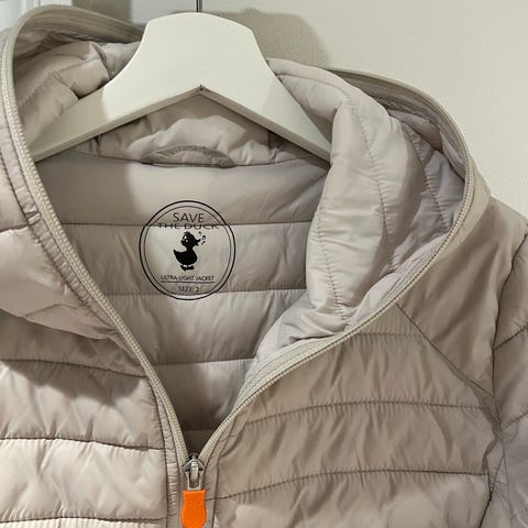 Save The Duck lett jakke for dame i størrelse M. Jakken er quiltet og laget i polyester, med glatt yttermateriale og lett vattering. Fargen er blå på utsiden og lys innside. Modellen har hette, gjennomgående glidelås i front og sidelommer med glidelås. Passer som lett ytterjakke i overgangssesonger eller som et ekstra lag under en tykkere jakke på kaldere dager.