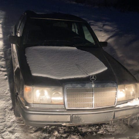 Mercedes S-klasse fra 1982 selges. Den har stått i 20 år, men er overraskende lite rust. Den har en sprekk i registeret og ut til motorrommet etter forrige eier hadde den overhalt, og de hadde ikke strammet igjen kjedeføringa godt nok så bolten har løsnet og slått høl.