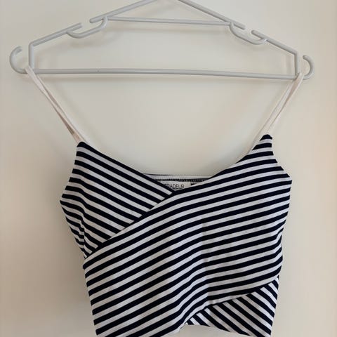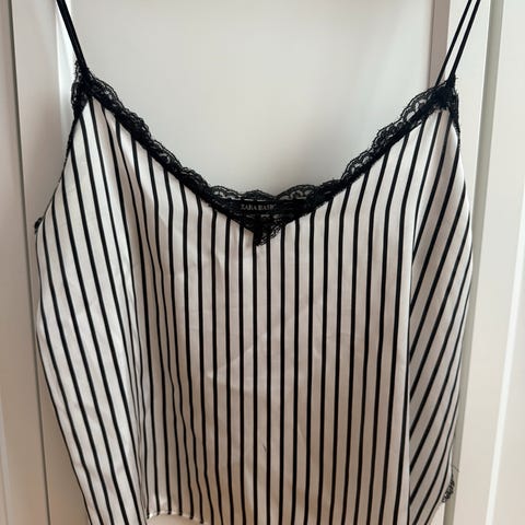 Tommy Hilfiger singlet for dame i størrelse M. Topp med tynne stropper og vertikale striper i flere farger. Laget i polyester. Passer som sommertopp eller til hverdagsbruk, og kan brukes alene eller under jakke eller cardigan.