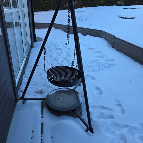 Lite brukt bålpanne og vaffeljern selges. Noe rust på beina