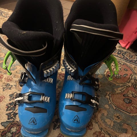 Brukte, men godt fungerende og varme alpinstøvler selges billig. Tre justerbare spenner. Størrelse 23,5 skal tilsvare str 37, men kan lønne seg å gå opp en str, disse har vært brukt av en som bruker 36 til vanlig.