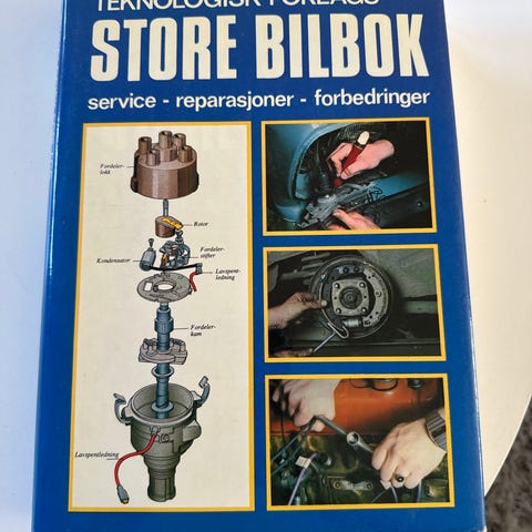 Teknologisk Forlags «Store bilbok» bok omhandler service, reparasjoner og forbedringer på personbiler. Boken beskriver blant annet motor, drivverk, bremser, elektrisk anlegg og karosseri, med tekst og illustrerte trinnvise gjennomganger. Innholdet viser praktiske eksempler på vedlikehold og enkle reparasjoner, samt tips til justeringer og forbedringer av bilen. Egner seg som oppslagsverk for bileiere og hobbymekanikere som ønsker teknisk informasjon om bil og bilhold.