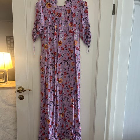 Nydelig kjole i dus lavendel farge. Vanskelig å fange fargen på kamera, men veldig fin. Aldri brukt fordi den dessverre ikke passet.
