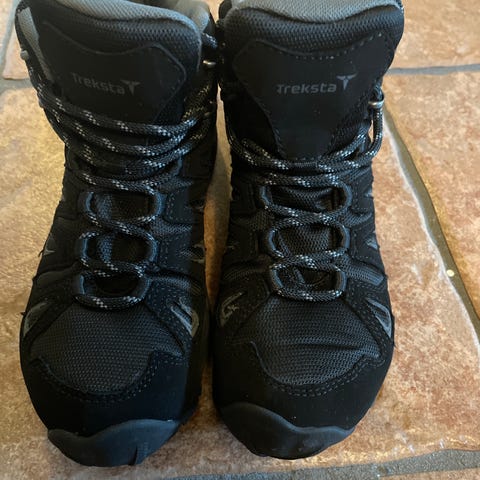 Tursko med pigger i størrelse 46 i svart farge. Skoene er laget for bruk utendørs, for eksempel til fotturer og turer på glatt underlag. Yttersålen har kraftig mønster med integrerte pigger for bedre feste. Overdelen er i tekstil og syntetisk materiale med snøring for justering av passform. Skoene har høyere skaft som gir støtte rundt ankelen. Egnet til fotturer og generell bruk ute der det kan være behov for ekstra grep.