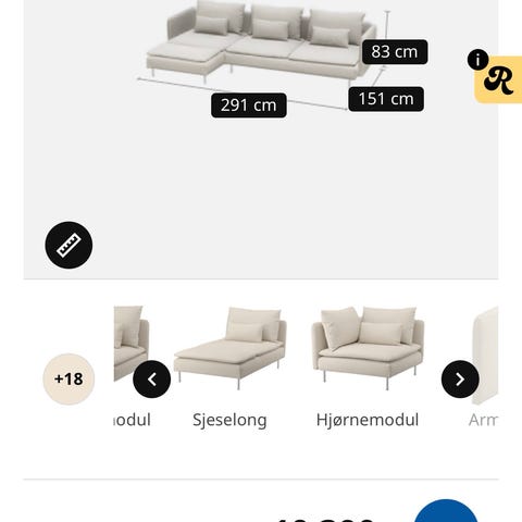 IKEA Söderhamn armlener og trekk til modulsofa-del beige tekstil