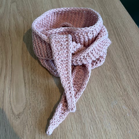 Sophie Scarf strikket etter oppskriften til Petite Knite . Strikket i 2 tråder, Rosa: Drops baby Merino og Drops Kid silk.