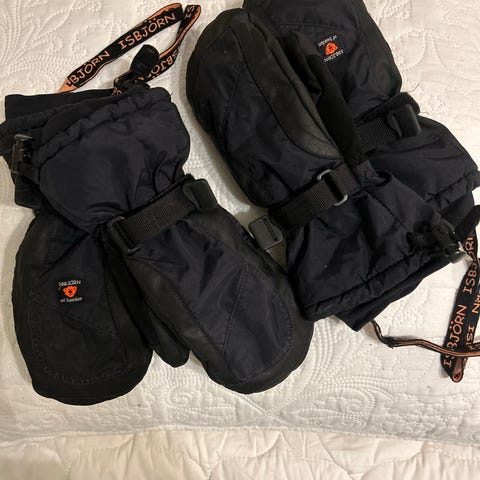 Varme og vannavstøtende vintervotter fra Isbjørn of Sweden. Størrelse 7/8 år, men er romslige i størrelsen.