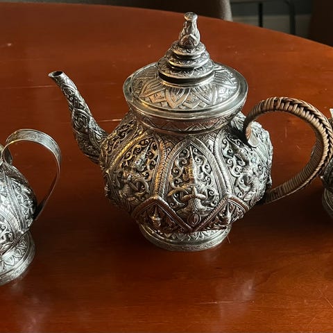 Vintage kaffekanne med fløtemugge og sukkerskål