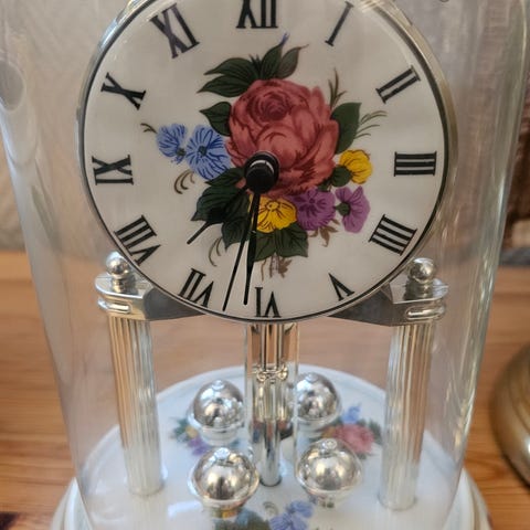Noe solbleket på de lyse kulene, ellers hel og pen. Disse ble gjerne satt oppå vedovn for at den skulle bevege seg av varmen. Et fantastisk blikkfang.