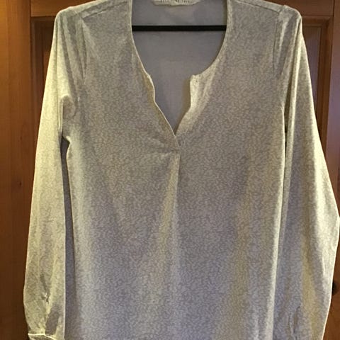 Days Like This topp for dame i størrelse S. Toppen er grå og har lange ermer. Den har knappestolpe foran med flere knapper og dekorative små detaljer øverst på brystpartiet. Passer til hverdagsbruk eller en enkel, penere stil, og kan kombineres med både bukser og skjørt.