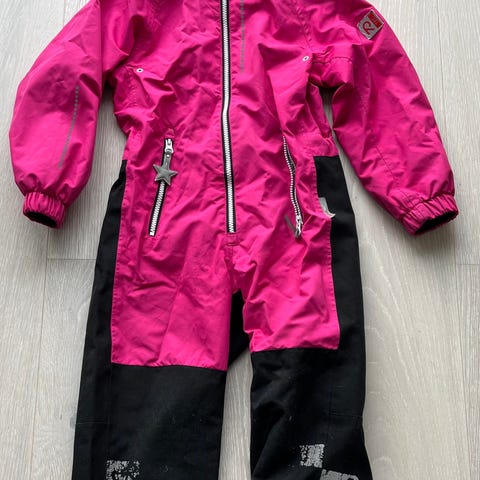 Reima kjeledress for barn i størrelse 110. Materiale i polyester med nettingfôr på innsiden. Passer som yttertøy for barn i ca. størrelse 110 cm. Reimer under sko er på.