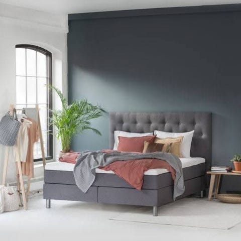 Bohus Zen kontinentalseng 180x200 cm. Modellen har rette, enkle linjer og står på ben som gir plass under sengen. Passer som dobbeltseng på soverom og gir en stor liggeflate for to personer. Egnet for bruk med standard sengetøy i størrelse 180x200 cm.