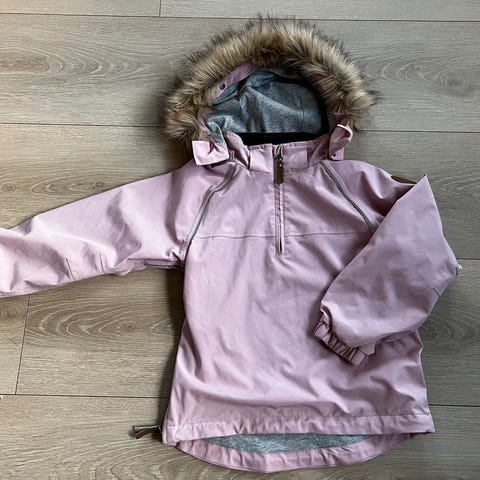 Selger en Gullkorn jakke i størrelse 122. Jakken er laget i polyester og har vattert, quiltet mønster. Den har hette, glidelåslukking foran og to glidelåslommer i siden. Fargen er rosa. Passer som ytterjakke til hverdagsbruk i kjøligere vær. Jakken har en liten rift på høyre arm som lett kan fikses. Ellers pent brukt - mye bruk igjen!