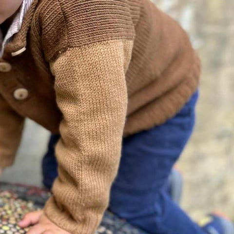 Hjemmestrikket nydelig myk t-skjorte/topp i gyllenbrunt og beige🤎 Strikket i Sandnes Duo garn som er 55% merinoull og 45% bomull. Klør ikke. Fra røyk- og dyrefritt hjem.