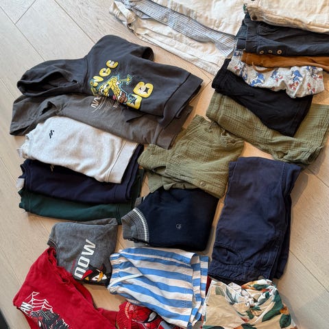 Se bilder for konkret innhold og størrelser. Alle klærne er brukt vår/sommer/tidlig høst 2025. Pent brukt av et barn.
