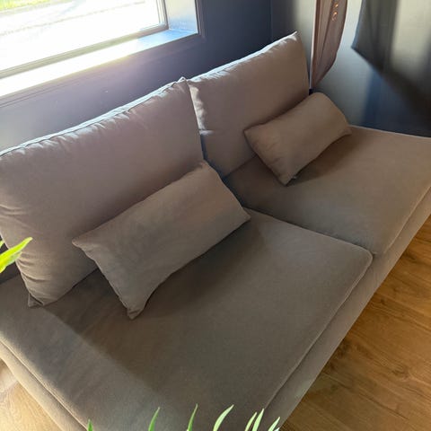 Trekket til armlenet er helt nytt, ligger i pakningen. De andre trekkene er minimalt brukt. Nyvasket.