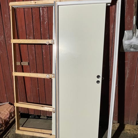Er fire dører. Selges for 1500kr per dør med skinner.