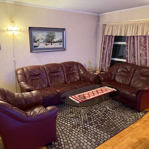 Rydder ut av dødsbo å gir i den forbindelse bort en 2- og 3-seter i brun velour. Den har stått i finstue, og er i god stand. Skal få tatt bedre bilder. Usikker på merke.