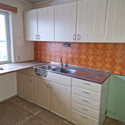 Selger bort alt av kjøkkenskap og skuffer, vi river kjøkken denne uken.