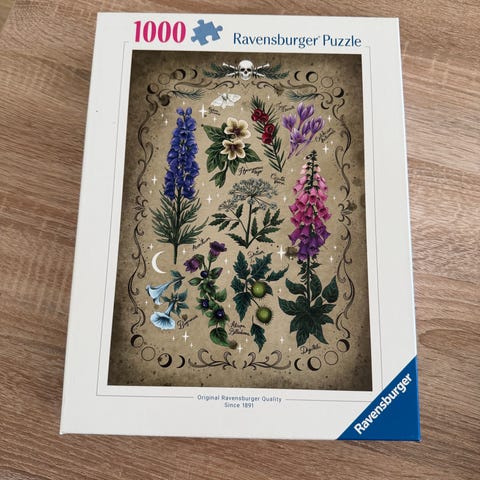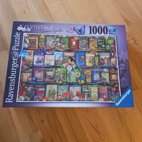 Ravensburger puzzle med 1000 brikker. Motivet viser et botanisk illustrert motiv med ulike blomster og sommerfugler på en vintage-inspirert bakgrunn. Puslespillet leveres i original eske og passer for ungdom og voksne som liker detaljerte natur- og planteillustrasjoner.