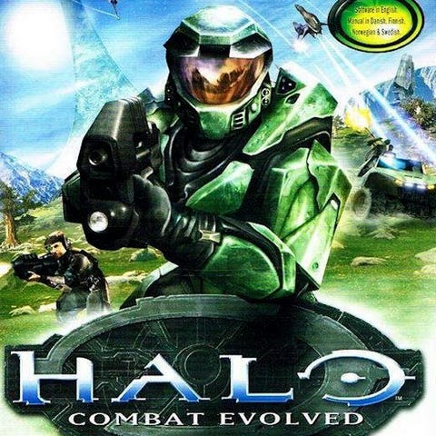 Halo Combat Evolved Xbox spill. Førstepersons skytespill for den originale Xbox-konsollen. Spillet følger Master Chief i kamp mot Covenant og andre fiender i et science fiction-univers. Utgaven er tilpasset nordisk marked, med tekst på blant annet norsk, dansk og svensk på baksiden av coveret.