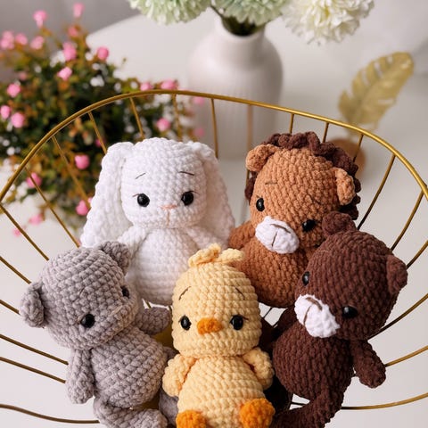Myk, koselig, med en søt heklet lue og sløyfe — en ekte kosevenn 🫶
