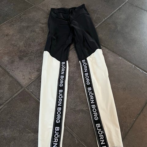 Björn Borg treningstights og topp/ sett for dame . Svart med zebramønstret detaljer og Björn Borg-logo på både tights og topp. Egnet til fitness og annen trening. Produsert i elastisk, teknisk materiale som gir god bevegelsesfrihet. Tightsen har bred strikk i livet med logodetaljer og snøring i livet. Singleten har bryterrygg med kontrastfôr på innsiden. Singleten er str 36 og tightsen er str 38, men den er liten, så derfor passer den str 36. Har klipt bort tags’n på plaggene, men har aldri blitt brukt. Kan hentes i Moss eller sendes, kjøper står for frakt. Se gjerne mine andre annonser ☺️
