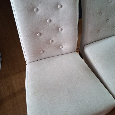 Hele og pene stoler gies bort.De har noen flekker som sikkert går av med en vaske runde.