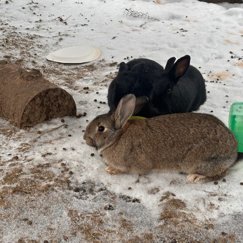 Ingen av de er kastrerte. De bor per nå i kjellern i et stor kaninbur. På våren/sommern er de ute hele døgnet. De spiser vanlig kaninför og høy.