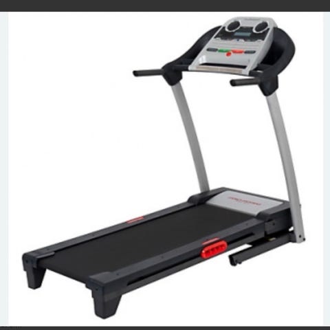 Cratos tredemølle med håndtak i svart utførelse. Modellen har et rett, enkelt stativ med gripebøyle foran og kontrollpanel med knapper for styring av hastighet og start/stopp. Løpebåndet er plassert på en lav ramme som gjør det enkelt å gå av og på. Tredemøllen egner seg til gange og lett trening innendørs, for eksempel i stue eller treningsrom. Den står på en beskyttelsesmatte som kan bidra til å dempe støy og beskytte gulvet under bruk. Lite brukt, kjøpt for tre år siden.