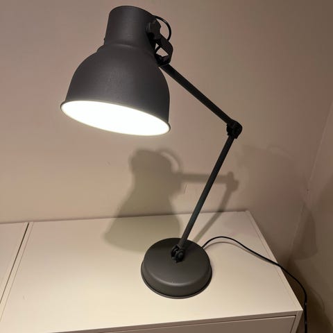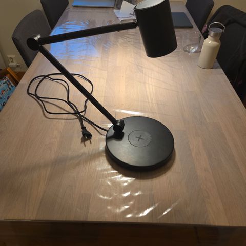 Bordlampe med veldig bra belysning, justerbar og med trådløs lader (ved å legge telefonen oppå)
