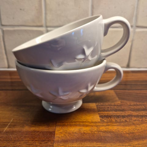 Selger 2 fine kopper ifra I.b Laursen til kr 75,- + porto. Høyde 7,5 cm diameter 12 cm. Fine til te og kakao 😊
