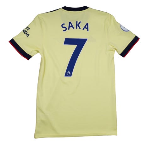 Selger denne fine Arsenal 25/26 Premier League bortedrakt med Saka #7 trykk bak, i spillerutgave (player-version)