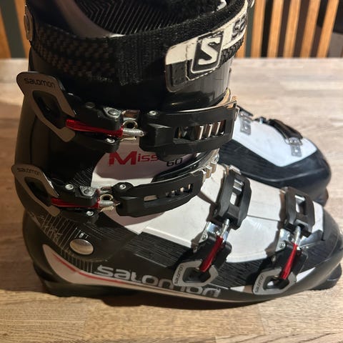 Pent brukte Salomon alpinstøvler med SCS-system og god støtte. Komfortable innerstøvler og solide spenner som gir stabil passform i bakken. Perfekt for både nybegynnere og viderekomne. Selges som vist på bildet. Hbo. 1000