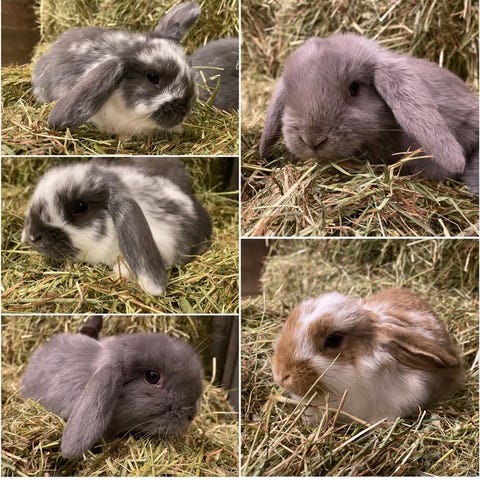 2 hokaniner, søstre, av blanding løvehode og dvergvedder. Snart 3 år gamle. Selges kun samlet🙂 Den ene kaninen har overveiende brun pels, mens den andre har hvit og brun pels med tydelig langhåret struktur. Er i isolert bur ute, med stort uteområde de kan boltre seg på. Elsker å være ute i all slags vær! Har tilgang på høy, vann og skjulested. Bur og uteområde (innhegning med netting på alle kanter) kan følge med, samt en helt ny sekk med for (pellets) og høy.