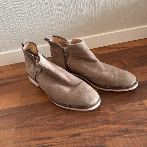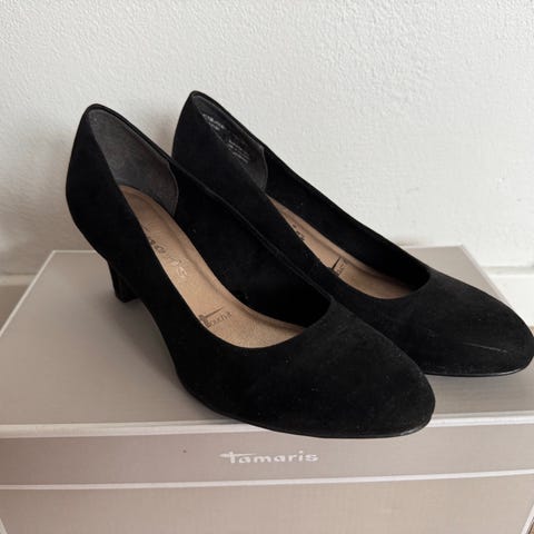 Tamaris hæler størrelse 38 beige semsket skinn