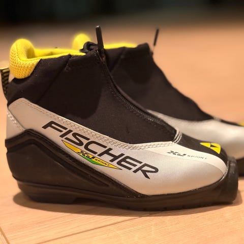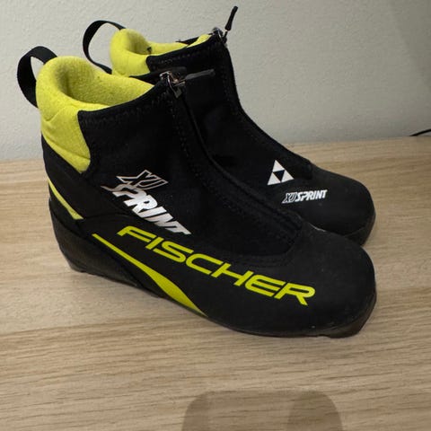 Svært pent brukte skisko fra Fischer! Anslår de er "brukt"/hatt på seg 3 ganger og gått til sammen 200 meter med :-)