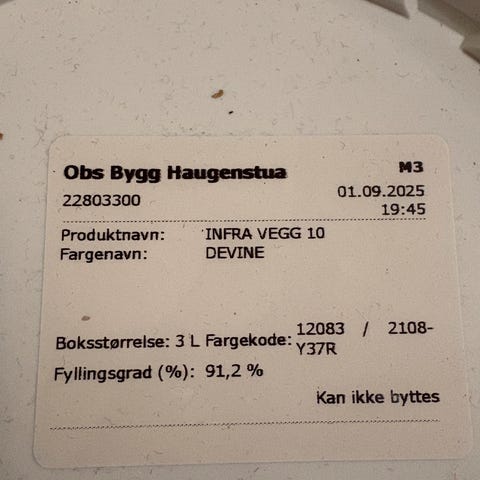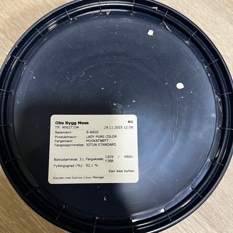 Nesten helt full 2,7l boks med maling i fargen secret green selges rimelig.