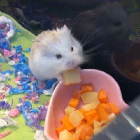 Jeg kjøpte 2 hamstre i dag og skulle egentlig ha de i samme bur, da jeg fikk høre at det skulle gå fint. Etter å ha forhørt meg mer anbefales det visst nok ikke i det hele tatt. Selger derfor den hvite dverghamsteren. Det er en hamsterunge.