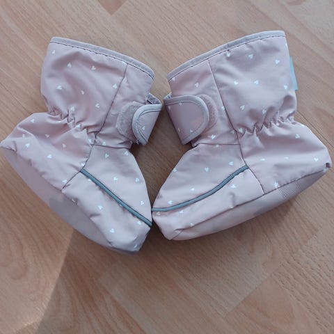 H&M babysko/skopose/ vinter tøfler til utendørs bruk i størrelse 19/21. Skoene har myk overdel med elastisk kant rundt ankelen for bedre passform. Brukte mest da barnet satt i barnevogna. Vannavvisende i tillegg.