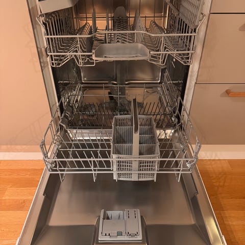Electrolux integrert oppvaskmaskin. Modellen er beregnet for innbygging under benk. Med hvit front. Maskinen følgte med kjøp av leilighet. Tror ikke den er mye brukt. Ser veldig fin ut. Og virker som den skal.