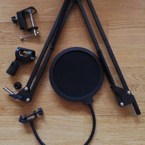 Selger er eldre k&m mikrofonstativ med filter. Se bilde.