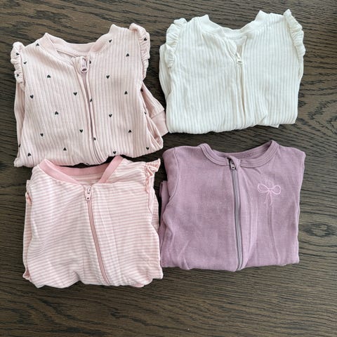 H&M body for jente i størrelse 50, 56(elefant mønsteret), 62 (lindex blomster). Plaggene er flerfargede med ulike mønstre og nyanser, blant annet rosa og lyse toner. Bodyene har korte ermer og er egnet som basisplagg til nyfødt og spedbarn. Passer til daglig bruk under bukser eller sparkedresser, eller alene i varmere vær.