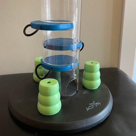 Kjekk aktivitetsleke både for hund og katt. Jeg selv har brukt den på en aktiv Savannah katt. Går på batteri.