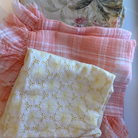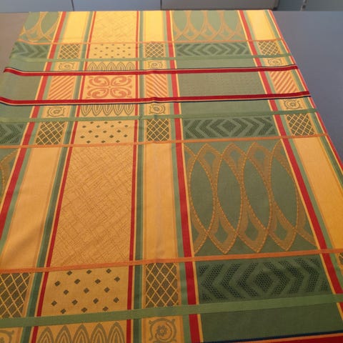 Mønstret bomullsstoff fra Sandvika veveri, ca 7m. Ikke brukt, bare lagret.