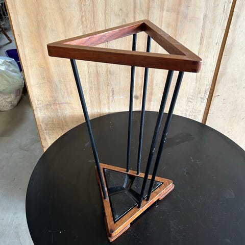 Nydelig 6-kantet hylle i tung eik med speil selges billig da den ikke har funnet sin plass. Aldri hengt opp. Innebygget oppheng bak.