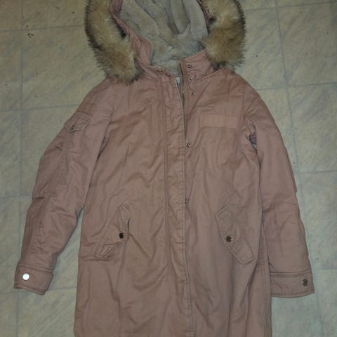 H&M jakke for barn i størrelse 13-14år. Jakken er brun og laget i bomull. Den har hette med fuskepelskant, glidelåslukking foran og sidelommer. Innsiden har mykt fôr for ekstra komfort og varme. På baksiden står teksten "The future is ours". Unisex-modell som passer både gutter og jenter.