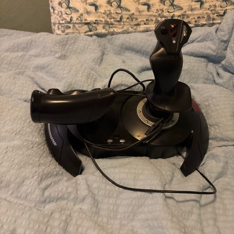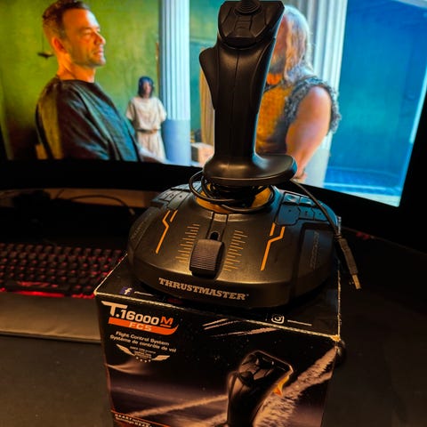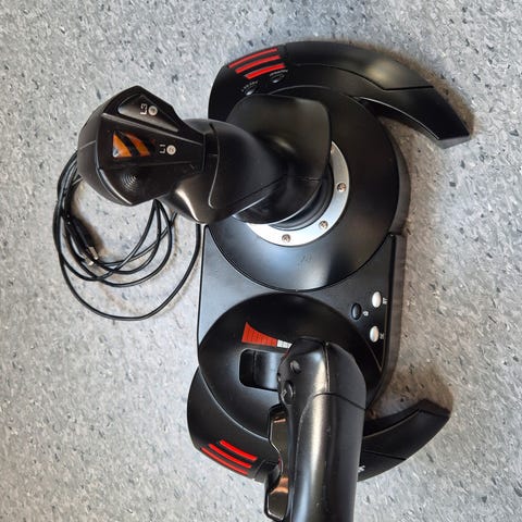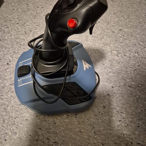Selger to pent brukte Thrustmnaster T.16000m joysticks. Dette er perfekte joysticks dersom man vil begynne med space-sim spill som Elite Dangerous eller Star citizen der dual joysticks (hosas - hands on stick and stick) er veien å gå for å kunne styre alle 6 akser. Dersom flysimulator er mer din ting kan venstre sticken isteden brukes som throttle.