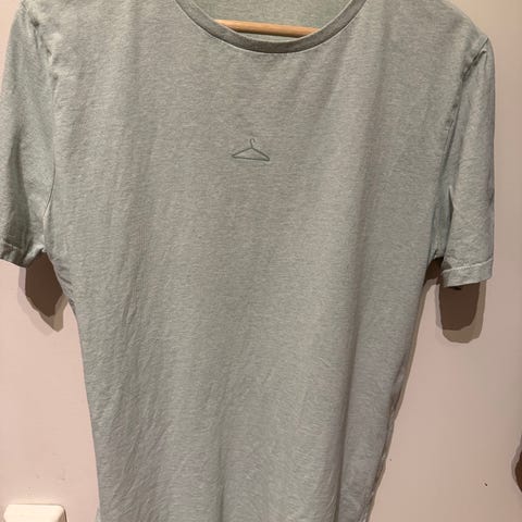 Har et bittelite hull på skulderen og litt misfarging nederst på t-skjorta. Eller i god stand.